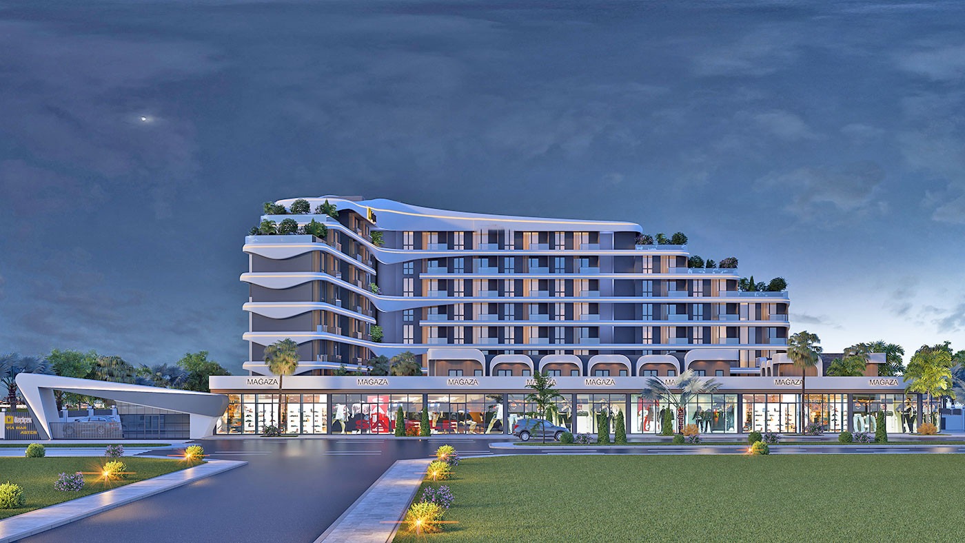 1 adet 400 m², 1 adet 200 m², 1 adet 130 m², 2 adet 100 m², 2 adet 85 m² olmak üzere, toplamda 7 adet ticari alanı bulunmaktadır.